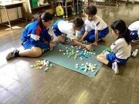 7/11(金)たてわり遊びがありました。今回は、縦割り班ごとにペットボトルのふたを使ってペットボトルキャップアートに挑戦しました。班で相談しながら、「世界に一つだけの」花火ができあがりました。