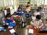 6/13(金)5年生は、家庭科で初めての手縫いに取り組みました。まずは、玉結び、玉留めから。教室の所々から、うめき声が聞こえてきました。初めての子にとっては、本当に難しいですよね。針と糸を使って布を縫えるようになると、便利なものやプレゼントなど、自分のアイディアを生かしたものが作れます。最終的には、各自が小物作りに挑戦するようです。どんな作品ができるか楽しみですね。今回は、民生委員さんにもお手伝いしていただきました。