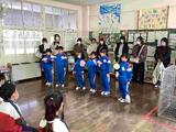 2/20(金)全校でたてわりなわとび記録会(大縄)が行われました。お日様タイムにたてわり班で練習した成果を発表しました。最初の頃は、なかなか跳べずにもじもじしていた低学年の子も今では本当に立派にみんなと跳ぶ姿を見て、成長の早さに驚かされます。練習で、そっと背中を押して跳ぶタイミングを教える子、大きな声で数を数えて盛り上げる子、何度引っかかっても歯を食いしばって飛び続ける子、しょんぼりしている子に声をかける子、楽しそうに跳んでいる子、こうしてみんなが跳べるようになったのも、みんなのおかげですね。全員に、拍手を送りたいと思います。がんばったね。